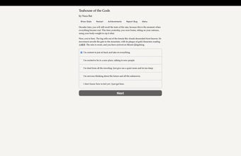 เมื่อคุณนำทางผ่านความท้าทายในการดำเนินการร้านชา คุณจะพบกับเหตุการณ์และตัวละครที่ไม่เหมือนใครซึ่งแนะนำองค์ประกอบของแฟนตาซีและการผจญภัย เกมนี้มีการผสมผสานที่น่าหลงใหลระหว่างการจัดการและการเล่าเรื่อง ส่งเสริมให้ผู้เล่นทำการตัดสินใจเชิงกลยุทธ์ที่กำหนดเส้นทางการเดินทางของพวกเขา ด้วยบรรยากาศที่ดื่มด่ำและเรื่องราวที่ซับซ้อน Teahouse of the Gods มอบประสบการณ์การเล่นตามบทบาทที่โดดเด่นซึ่งรวมธีมดั้งเดิมเข้ากับกลไกการเล่นเกมสมัยใหม่